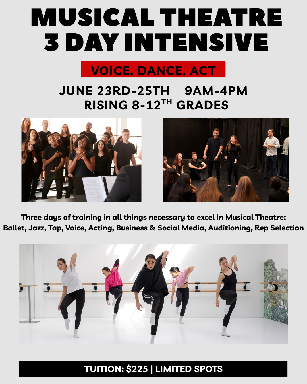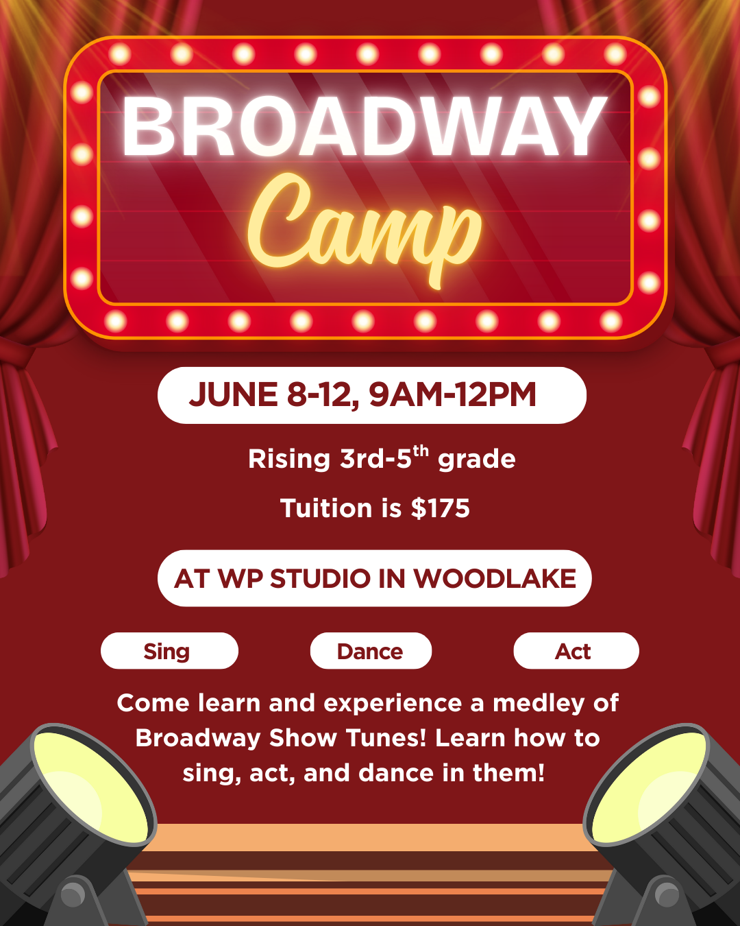 Auditions for lead roles will take place June 22nd and 23rd, with call backs the 24th. Students must be registered campers in order to audition. Students can still participate in the camp and not audition for a lead…auditioning is optional.